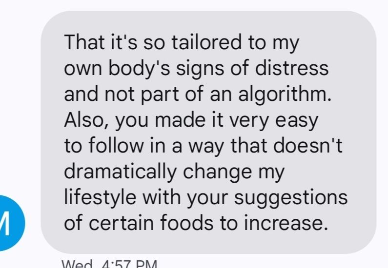 - Disempowered when it comes to trusting your body’s signals or not knowing how to get back on track