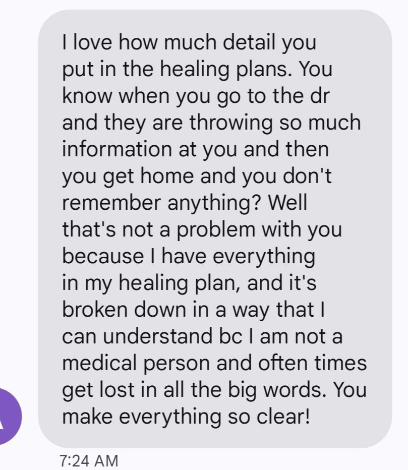 Prior to the call she had numbers on a paper that meant nothing, but then afterward she had clarity in a language she understood with next steps!
